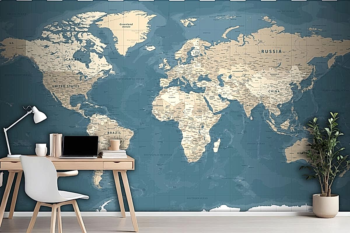 Dünya Haritası Vintage Siyasi Karanlık Duvar Kağıdı