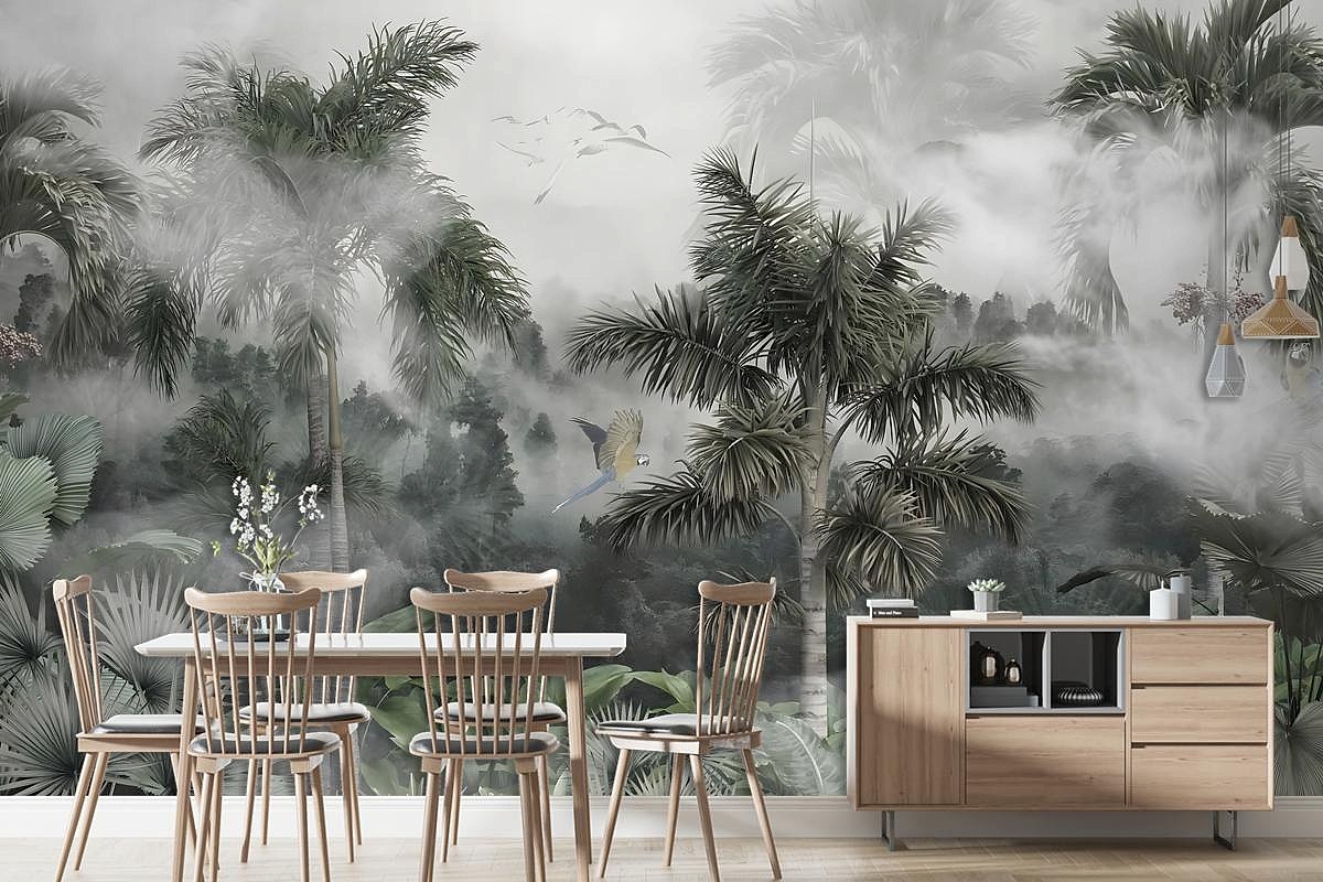 Sisli Tropikal Orman Özel Tasarım Duvar Kağıdı