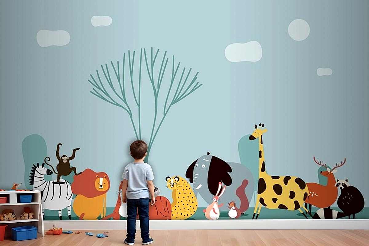 Vahşi Hayvanların Sevimli Grubu Çocuk Odası Duvar Kağıdı
